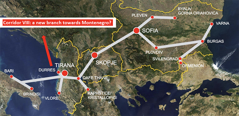 Il tracciato del Corridoio VIII verso l’estensione al Montenegro