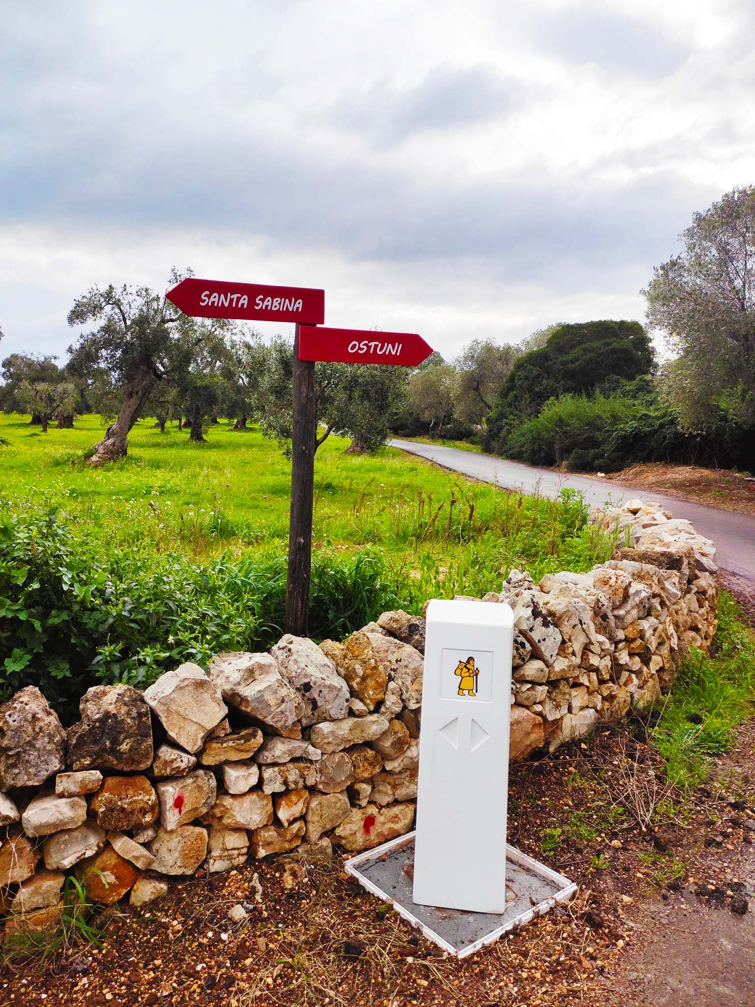 Il progetto di riqualificazione del percorso comprende la fornitura e posa in opera lungo tutto il tragitto, a intervalli regolari, sia della segnaletica orizzontale e verticale - coerente con quella approvata su tutto il percorso europeo - sia dei “cippi”: pietre miliari, veri e propri segni distintivi della Via Francigena. Saranno segnalati anche chiese, masserie, edifici rurali di pregio, zone di sosta e di ristoro per i viandanti, per le quali saranno impiegati materiali naturali per le sedute e pergolati, come avviene su tutto il percorso a livello europeo.