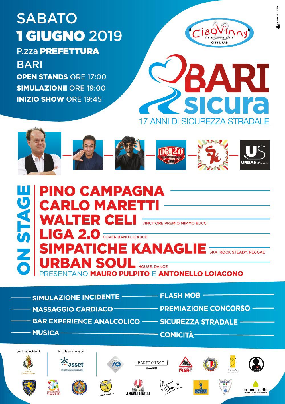 L'evento Bari Sicura, organizzato dalla Fondazione Ciao Vinny, è una vera e propria fiera gratuita sulla sicurezza stradale. Durante la manifestazione viene organizzata una simulazione di incidente stradale (con tanto di attori, fiamme e auto incidentate) con la dimostrazione reale di quello che avviene, con l'intervento di Vigili del Fuoco, Polizia Locale, Carabinieri o Polizia di Stato. La performance è seguita da momenti di distensione e alleggerita dall'intervento di ospiti nazionali e locali che intervengono sempre per lanciare messaggi legati alla cultura della vita, esibendosi per il pubblico gratuitamente.