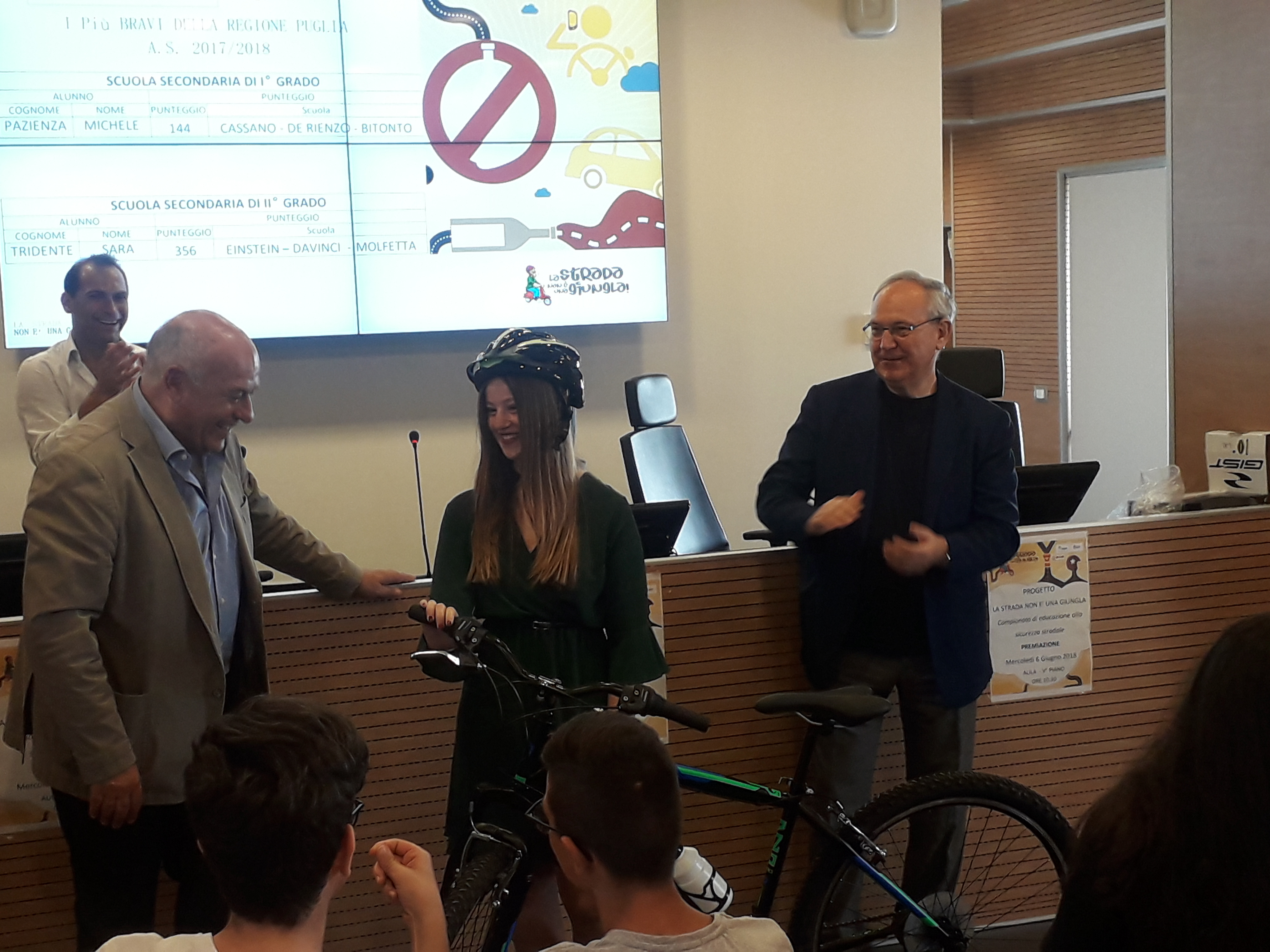 Nel corso della giornata, alla presenza del Vice Presidente della regione Puglia dott. Antonio Nunziante, dell’Assessore alla Mobilità Avv. Giovanni Giannini e del Commissario Straordinario dall’Agenzia regionale Strategica per lo Sviluppo Ecosostenibile del Territorio ing. Elio Sannicandro, sono stati premiati gli studenti vincitori del Campionato on-line sulla sicurezza stradale, edizione 2017/2018.